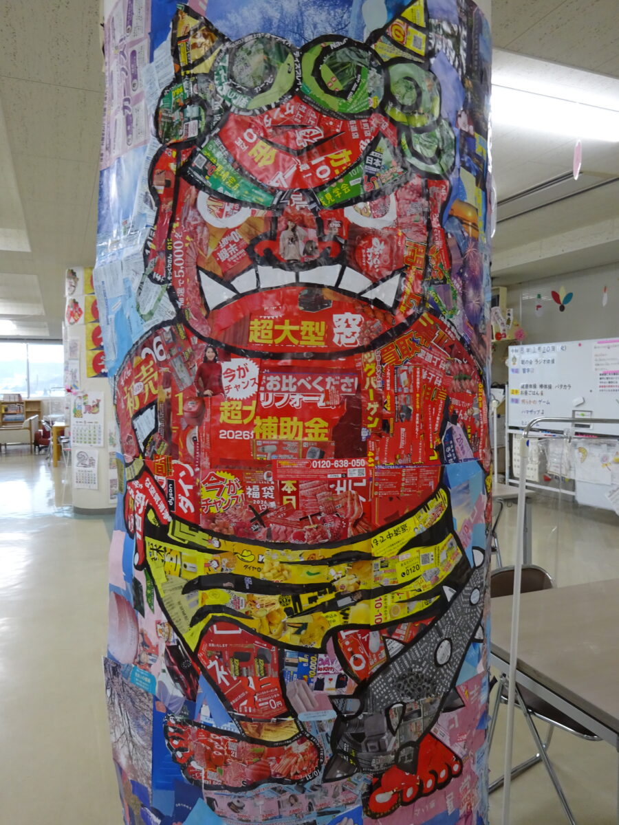 チラシを切って色分けをし、指定された場所へペタペタと貼っていきました👹
