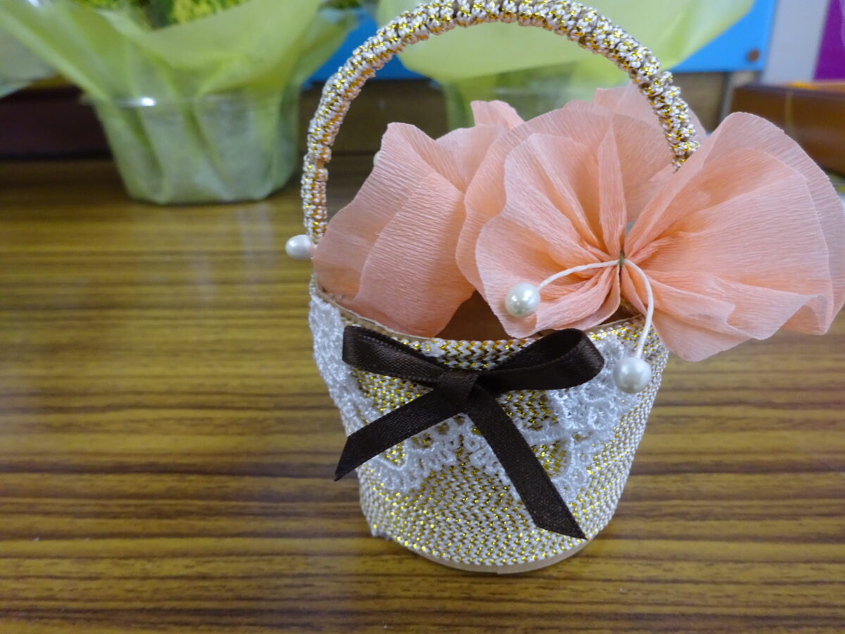 メタリックヤーンという毛糸をグルグルと紙コップに巻き付けて作りました✨