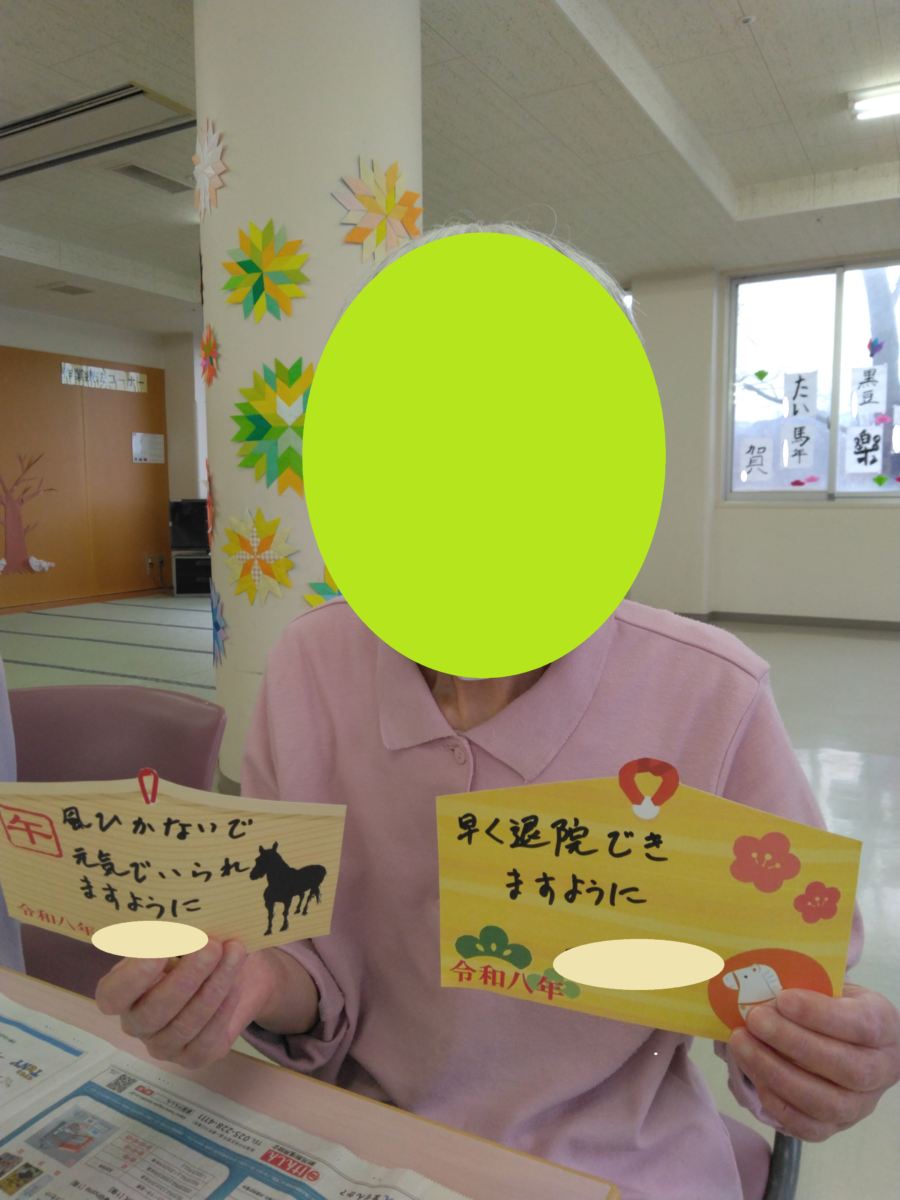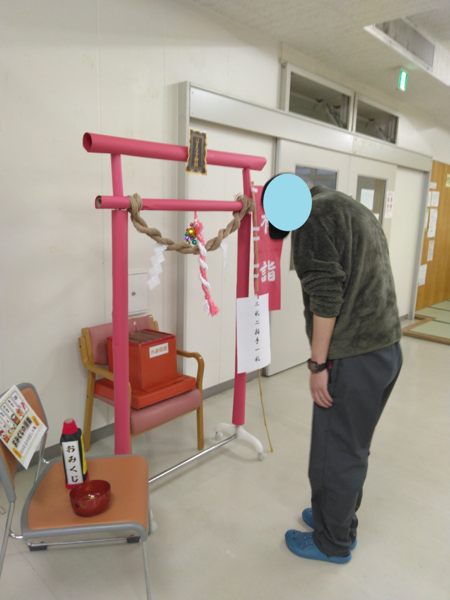 作業療法認知症OT HOME > はまなすdiary > 作業療法 > 🎍小正月🎍 🎍小正月🎍 2026-01-20 作業療法認知症OT 小正月を行いました🎍✨ 最初に絵馬を書いてもらい、はまなす神社にお参りをしました! 運試しでおみくじもしました! 大吉を引いた方が多くいらっしゃいました!良い年になりそうですね😊 みなさんの願い事や目標が叶いますように…⭐ 後半は福笑いで盛り上がりました!! 今年も楽しいイベントをたくさん企画していきたいと思います♪ 前後の記事へのリンク 前の記事 - 利きコーンポタージュ